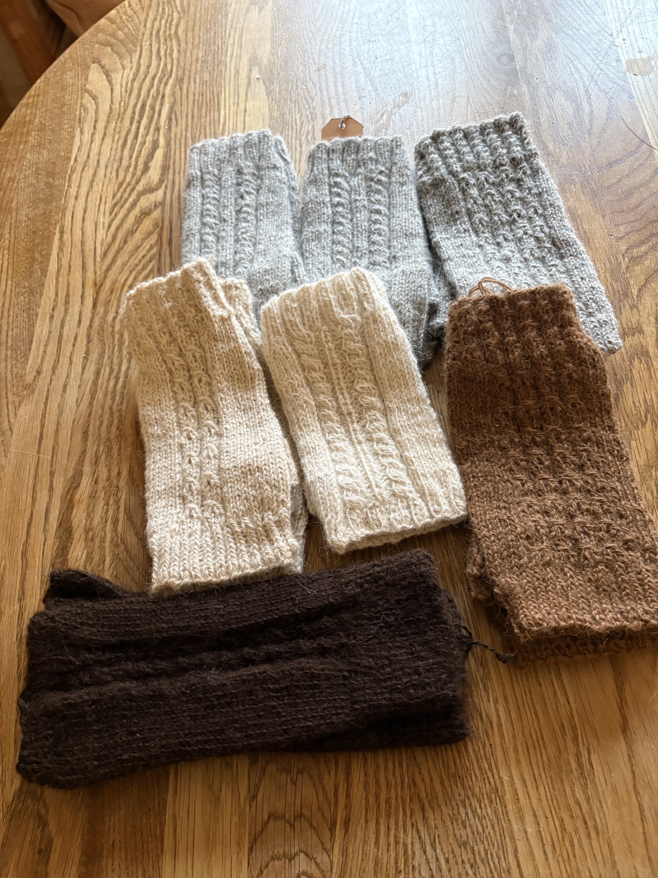 Torgvantar , stickade i garn från egna djur.